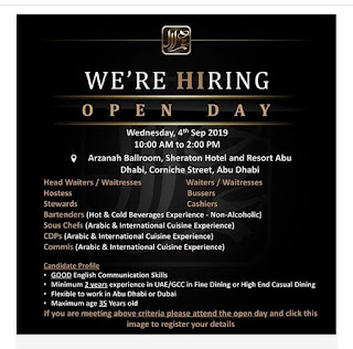 لمن يبحث عن عمل في الامارات من جميع المؤهلات من كافة الجنسيات للجنسين ذكور واناث، يمكنكم الآن الذهاب إلى اوبن داي يوم مفتوح للتقديم على الوظائف الشاغرة لشهر سبتمبر الحالي، وتسليم العمل فوري وبدون التزامات مالية مقدمًا.